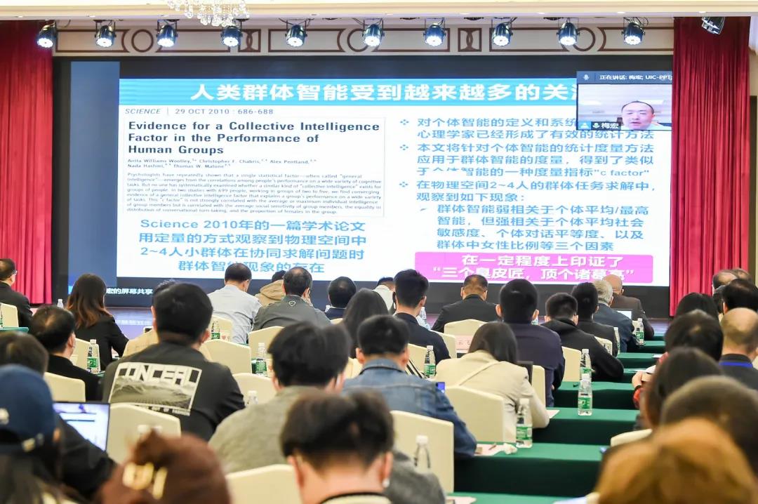 梅宏教授在会上发表了“如何构造人工群体智能”的主题演讲。梅教授首先分析了物理空间和网络空间中的典型群体智能现象及相关研究与实践,并从微观和宏观两个层次阐述群体智能的基本原理。他介绍了人工群体智能系统的概念,以及关于群体智能系统的构造性模型和群体智能系统的分类框架。