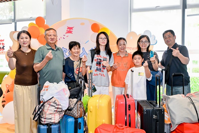 2024级新生和家长在校园里合影留念