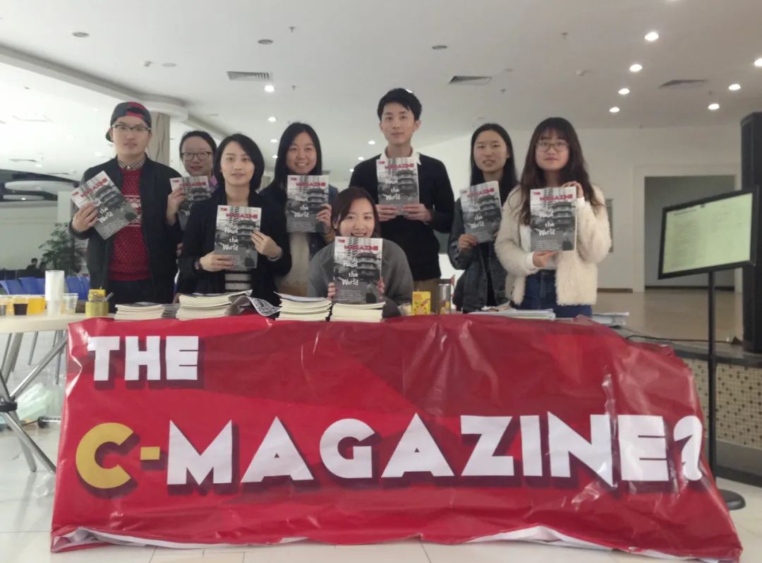 在北师港浸大,詹晓曼(前排中)和同学一起编辑专业杂志